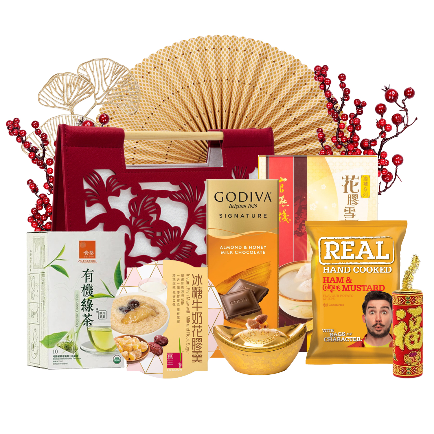 · The decorations in the images are for visual effect and may have been digitally enhanced. Each gift hamper comes with ONE CNY decoration, supply while stock last.